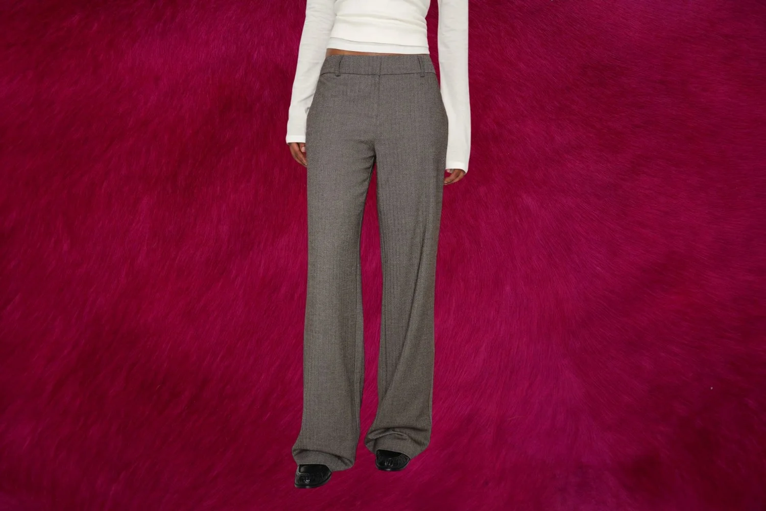 The Gisele Low Rise Pant from Reformation channels the understated refinement of Burberry’s herringbone trousers. Made from deadstock knit fabric, the subtle stripe texture gives them that same countryside-inspired tailoring without feeling too formal. The fit is relaxed yet sleek — easy to pair with boots or loafers. At $198, they bring the right amount of structure and sustainability to match the vibe.