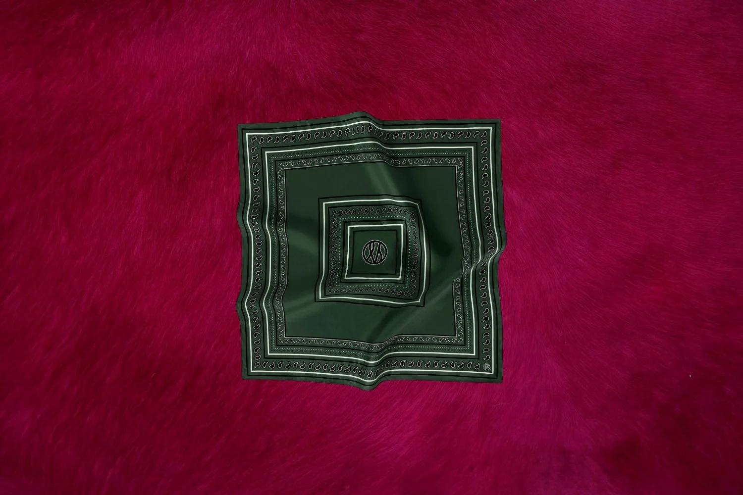 For a more playful alternative, the Paisley Scarf from Lescarf delivers a brighter green with a white and black pattern. The 100% silk fabric moves fluidly and adds visual interest — an easy way to bring personality into the look while keeping the refined tone. At $150, it’s a versatile piece that can be styled multiple ways, from necktie to bag accent.